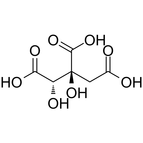 Administration of Garcinia Extract and Hydroxycitric acid/HCA to Mice [2] An MF diet mixed with Garcinia extract at a concentration of 0.2% was administered to 4-week-old male mice for a total of 7 weeks while considering the toxicity of the material. The control group was administered an MF diet. The mice were irradiated with a laser 6 weeks after beginning administration. We injected 30 mg/kg/day HCA suspended in corn oil intraperitoneally to 6-week-old male mice 5 days/week for a total of 2 weeks. The control group was injected with corn oil. The laser was irradiated 1 week after the initial injection. Medications in vivo [3] Hydroxycitric acid tripotassium/K-HCA and citrate acid tripotassium/K-CA were tested as inhibitors to prevent the formation of stones. We randomly divided 600 flies into 6 groups (100 flies in each group) and fed them high-oxalate (0.05% NaOx) medium. Different concentrations (0.01%, 0.1%, and 1%) of K-HCA and K-CA were added in the medium of corresponding groups. Stone formation and life span were assessed in the same way as above. |