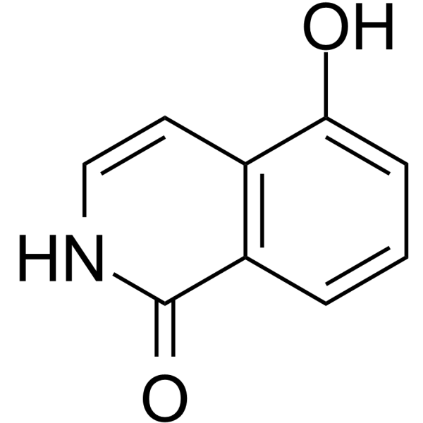 在稳定整合的 HSV tk 基因突变校正中,1,5-异喹啉二醇可将基因靶向绝对频率上调高达 8 倍 [1]。强效 PARP 拮抗剂 1,5-异喹啉二醇可降低糖尿病视网膜中的 PARP 裂解。视网膜 Muller 细胞由 H2O2 引起的裂解 PARP-1 表达上调可被 1,5-异喹啉二醇(500 μM H2O2;24 小时)减弱。糖尿病患者视网膜硝化蛋白表达上调;然而,1,5-异喹啉二醇减弱了这种效果。在视网膜中,糖尿病诱导的 NADPH 氧化酶激活可被 1,5-异喹啉二醇减弱 [2]。
