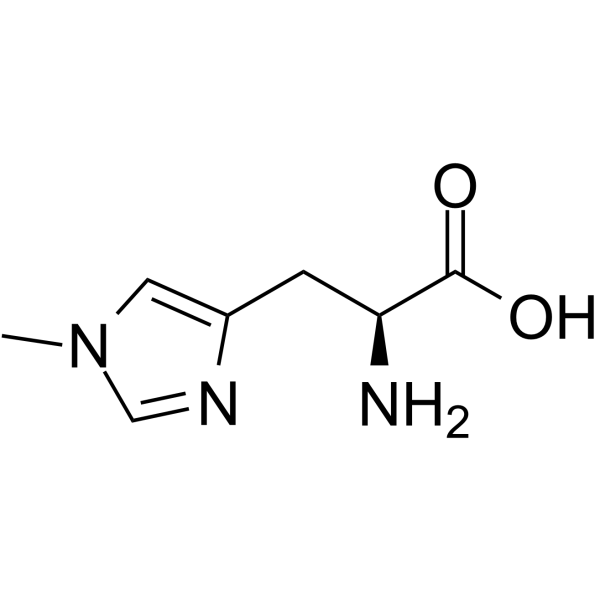1-Methylhistidine is a metabolite found in or produced by Escherichia coli (strain K12, MG1655). 1-Methyl-L-histidine has been reported in Prunus domestica with data available. 1-Methylhistidine is a histidine derivative that has a methyl group bound to the nitrogen at position 1 and results from the metabolism of the dipeptide anserine. Urinary levels of 1-methylhistidine may be indicative of myofibrillar protein degradation or a high protein diet. - 1-Methyl-L-histidine is a naturally occurring methylated histidine derivative [1] - It is a specific qualitative biomarker for exogenous 3-methylhistidine intake and meat consumption (beef, pork, chicken), as it is not endogenously synthesized in mammals. Its urinary excretion directly reflects the ingestion of proteins rich in 3-methylhistidine [1] |