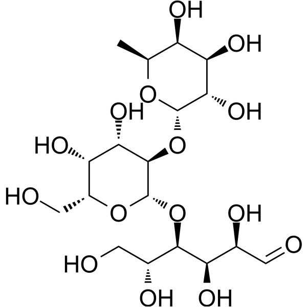 C[C@H]1[C@H]([C@H]([C@@H]([C@@H](O1)O[C@@H]2[C@H]([C@H]([C@H](O[C@H]2O[C@H]([C@@H](CO)O)[C@@H]([C@H](C=O)O)O)CO)O)O)O)O)O