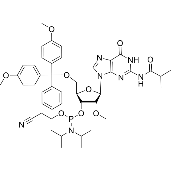 CC(C)C(=O)NC1=NC2=C(C(=O)N1)N=CN2[C@H]3[C@@H]([C@@H]([C@H](O3)COC(C4=CC=CC=C4)(C5=CC=C(C=C5)OC)C6=CC=C(C=C6)OC)OP(N(C(C)C)C(C)C)OCCC#N)OC