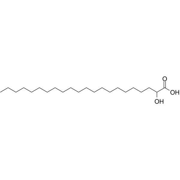 2.-羟基十二烷酸对 DPPH 的 IC50 为 7.6 µg/mL[1]。 AChE 和 BChE(IC50 分别为 68.65 µg/mL 和 49.52 µg/mL)被 2-羟基二十二烷酸抑制 [1]。对于大肠杆菌、铜绿假单胞菌和金黄色葡萄球菌,2-羟基十二烷酸的最低抑菌浓度 (MIC) 分别为 ≤125、≤250 和 ≤150 µg/mL [1]。
