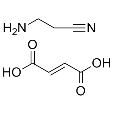β-氨基丙腈半富马酸盐是一种富马酸盐,由β-氨基丙腈与一分子富马酸反应制得,每两分子β-氨基丙腈反应生成一分子富马酸。它具有抗肿瘤、抗风湿、胶原交联抑制和植物代谢等多种用途。它含有β-氨基丙腈。