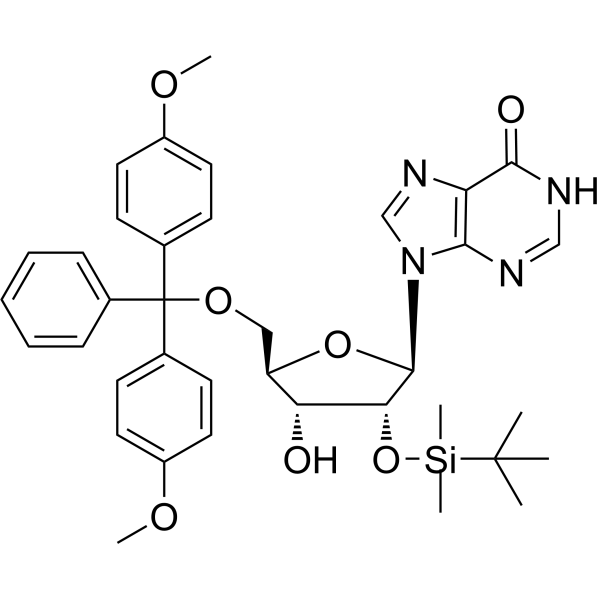 CC(C)(C)[Si](C)(C)O[C@@H]1[C@@H]([C@H](O[C@H]1N2C=NC3=C2N=CNC3=O)COC(C4=CC=CC=C4)(C5=CC=C(C=C5)OC)C6=CC=C(C=C6)OC)O
