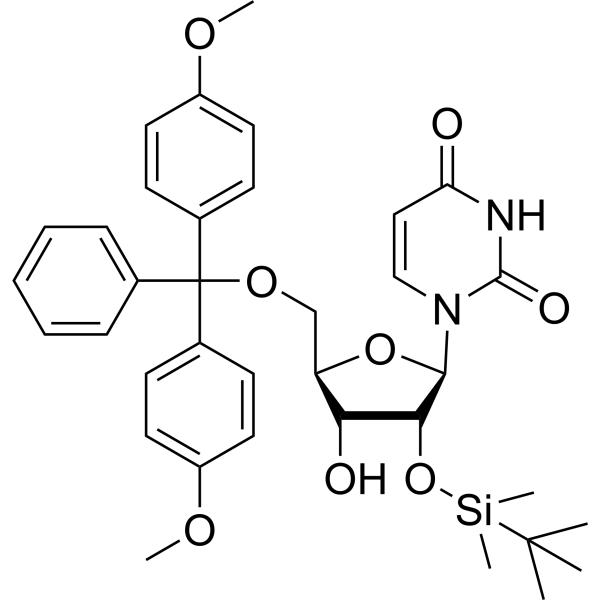 CC(C)(C)[Si](C)(C)O[C@@H]1[C@@H]([C@H](O[C@H]1N2C=CC(=O)NC2=O)COC(C3=CC=CC=C3)(C4=CC=C(C=C4)OC)C5=CC=C(C=C5)OC)O