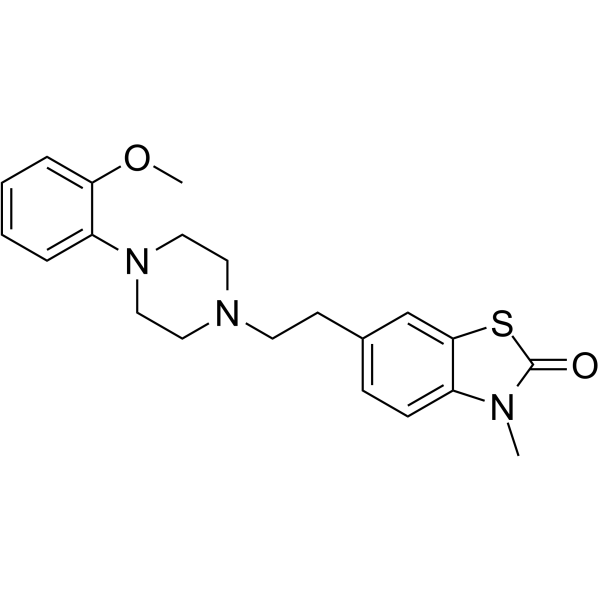Compound 24 (3-Methyl-6-(2-(4-(2-methoxyphenyl)piperazin-1-yl)ethyl)benzothiazolin-2-one) is a multi-receptor ligand. The half-maximal inhibitory concentrations (IC50) from receptor binding assays are: 5-HT1A (2 ± 0.3 nM), 5-HT1B (300 ± 55 nM), 5-HT2A (500 ± 75 nM), 5-HT2C (4000 ± 440 nM), D2 (40 ± 9 nM), and α1 (10 ± 3 nM). It functions as a 5-HT1A ligand, a D2 antagonist, and a 5-HT2A antagonist [1].
