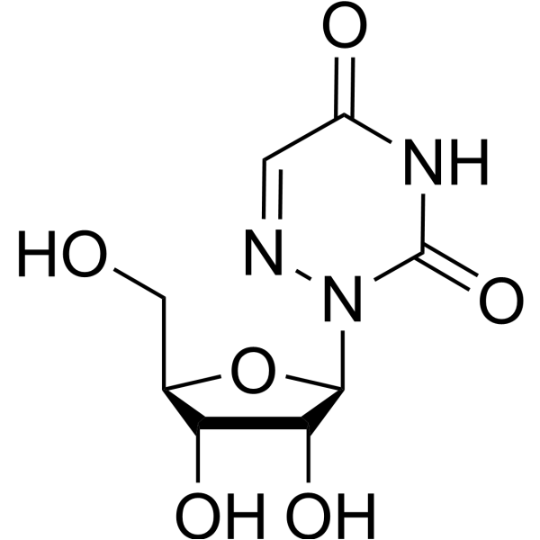 6-氮尿苷是尿苷的合成三嗪类似物,具有抗代谢活性。6-氮尿苷抑制嘧啶从头合成和DNA合成,并在细胞内转化为单磷酸、二磷酸和三磷酸衍生物,这些衍生物可掺入RNA并抑制蛋白质合成。 它是一种用作抗肿瘤抗代谢药物的三嗪核苷。它干扰嘧啶生物合成,从而阻止细胞核酸的形成。其三乙酸酯形式也具有抗银屑病作用。 作用机制 6-氮尿苷(AzUrd)是一种广谱抗代谢药物,可抑制DNA和RNA病毒的复制。先前的研究表明,几种对AzUrd敏感的病毒会诱导尿苷激酶水平升高,这或许可以解释AzUrd对这些病毒的选择性活性。本研究通过在病毒感染潜伏期用[14C]-乳清酸标记细胞,比较了AzUrd敏感病毒和耐药病毒的乳清酸代谢途径。该方法在痘苗病毒、新城疫病毒和水疱性口炎病毒中均未检测到差异。当使用最高浓度的抗代谢物时,AzUrd可抑制乳清酸向细胞内的转运达30%,同时抑制乳清酸掺入细胞RNA达50%(考虑到上述30%的抑制率)。这表明,除了阻断乳清酸脱羧酶外,AzUrd 可能还作用于抑制病毒增殖的其他位点。 ……吡唑呋喃和 6-氮尿苷是两种核苷类似物,它们被认为会干扰 OMP 脱羧酶(另一种参与嘧啶核糖核苷酸生物合成的酶),从而增强 Ce-Cyd 的细胞毒性活性。 氮杂胞苷易脱氨基生成氮尿苷并进一步降解。它可掺入 DNA 并改变基因表达。……氮杂胞苷在体内和体外均能引起 DNA 低甲基化。 治疗用途 一种三嗪核苷,用作抗肿瘤抗代谢药物。它干扰嘧啶生物合成,从而阻止细胞核酸的形成。三乙酸酯形式的6-氮尿苷也具有抗银屑病作用。 用于治疗银屑病和蕈样肉芽肿的抗代谢药物/6-氮尿苷三乙酸酯/ /既往用途/ 氮尿苷(azur)及其三乙酰衍生物阿扎立宾已被证明在治疗银屑病方面具有价值。 /既往用途/ 6-氮尿苷、6-巯基嘌呤和长春新碱的联合用药可有效诱导儿童急性髓系白血病缓解。 有关6-氮尿苷(共17种)的更多治疗用途(完整)数据,请访问HSDB记录页面。 药物警告 抗代谢药物6-氮尿苷可阻断嘧啶的从头合成,并导致包括同型半胱氨酸在内的多种氨基酸血清水平升高。由于部分银屑病患者出现动脉和静脉血栓栓塞事件,6-氮尿苷已停止用于银屑病的临床治疗。本研究利用静脉和动脉血栓形成的标准动物模型,证实口服或静脉注射6-氮尿苷可引起血栓形成,但不会导致高同型半胱氨酸血症。 尽管该药物可能对治疗银屑病关节炎的急性发作有显著益处,但它会导致类风湿性关节炎患者出现不明原因的病情加重。/6-氮尿苷三乙酰衍生物/ 制剂必须保证高质量,因为即使少量未乙酰化的氮尿苷也会被肠道微生物分解代谢为神经毒性代谢物氮尿嘧啶。 /6-氮杂尿苷三乙酰衍生物/ 每日200 mg/kg高剂量使用氮杂立宾可有效诱导重度银屑病患者暂时缓解,但可能出现严重的神经毒性……/6-氮杂尿苷三乙酸酯/ 6-氮杂尿苷三乙酸酯 (6-AzUrd-TA) 的给药可引起实验动物和人体氨基酸代谢的改变。这种影响与剂量相关。6-AzUrd-TA 引起的氨基酸改变类似于先天性同型半胱氨酸尿症、β-丙氨酸血症和高组氨酸血症。以磷酸吡哆醛为辅酶抑制某些酶似乎是这些改变的共同点。有证据表明,由 6-AzUrd-TA 引起的同型半胱氨酸血症和血栓事件之间存在关联……/6-氮杂尿苷三乙酸酯/ |