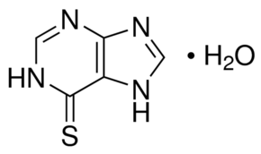 Mercaptopurine hydrate is a hydrate. It contains a mercaptopurine. Mercaptopurine is a thiopurine-derivative antimetabolite with antineoplastic and immunosuppressive activities. Produced through the metabolism of mercaptopurine by hypoxanthine-guanine phosphoribosyltransferase (HGPRT), mercaptopurine metabolites 6-thioguanosine-5'-phosphate (6-thioGMP) and 6-thioinosine monophosphate (T-IMP) inhibit nucleotide interconversions and de novo purine synthesis, thereby blocking the formation of purine nucleotides and inhibiting DNA synthesis. This agent is also incorporated into DNA in the form of deoxythioguanosine, which results in the disruption of DNA replication. In addition, mercaptopurine is converted to 6-methylmercaptopurine ribonucleoside (MMPR) by 6-thiopurine methyltransferase; MMPRs are also potent inhibitors of de novo purine synthesis. (NCI04) An antimetabolite antineoplastic agent with immunosuppressant properties. It interferes with nucleic acid synthesis by inhibiting purine metabolism and is used, usually in combination with other drugs, in the treatment of or in remission maintenance programs for leukemia. See also: Mercaptopurine (annotation moved to). Drug Indication Xaluprine is indicated for the treatment of acute lymphoblastic leukaemia (ALL) in adults, adolescents and children. 6-Mercaptopurine (6-MP) Monohydrate is a synthetic thiopurine antimetabolite, first approved for clinical use in the 1950s [1] - Mechanism of action: It is converted to active metabolites (6-thioguanosine monophosphate, 6-TGMP; 6-thioinosine monophosphate, 6-TIMP) via HGPRT. These metabolites inhibit de novo purine synthesis, incorporate into DNA/RNA to block replication/transcription, and suppress immune cell activation [1] - Clinical indications: Approved for the treatment of acute lymphoblastic leukemia (ALL), chronic myeloid leukemia (CML), and autoimmune diseases (rheumatoid arthritis, inflammatory bowel disease) [1] - Pharmacogenetics: TPMT gene polymorphism is a key predictor of toxicity—TPMT-deficient patients are at high risk of severe myelosuppression, requiring dose reduction or alternative therapy [1] - Additional biological activity: Regulates glucose transport in skeletal muscle via NR4A3, suggesting potential applications in metabolic disorders (e.g., type 2 diabetes) [2] |
