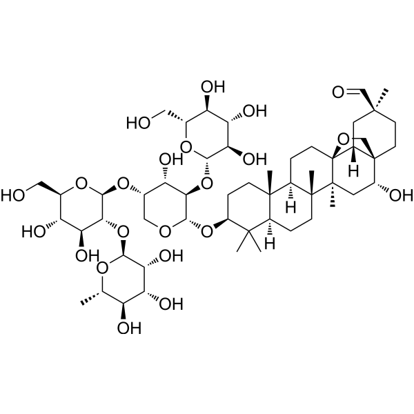 C[C@H]1[C@@H]([C@H]([C@H]([C@@H](O1)O[C@@H]2[C@H]([C@@H]([C@H](O[C@H]2O[C@H]3CO[C@H]([C@@H]([C@H]3O)O[C@H]4[C@@H]([C@H]([C@@H]([C@H](O4)CO)O)O)O)O[C@H]5CC[C@@]6([C@H]7CC[C@@]89[C@@H]1C[C@@](CC[C@]1(CO8)[C@@H](C[C@]9([C@@]7(CC[C@H]6C5(C)C)C)C)O)(C)C=O)C)CO)O)O)O)O)O