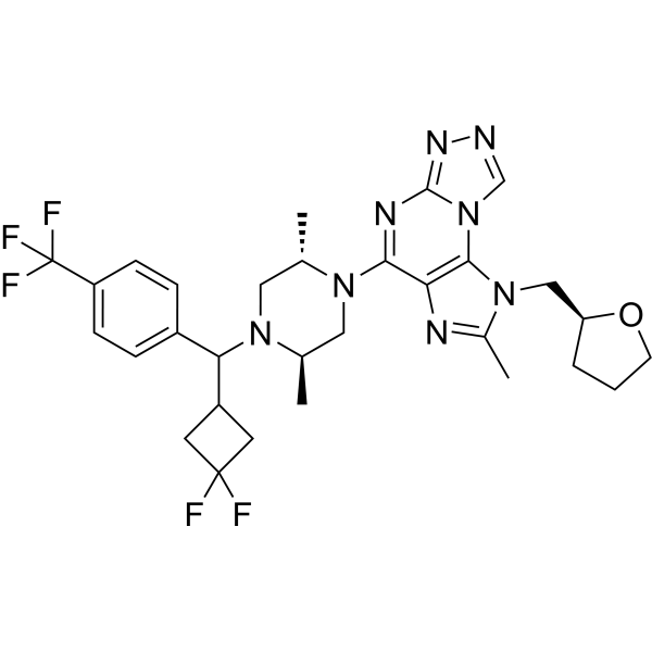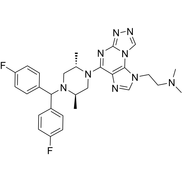 注射用配方 2: DMSO : PEG300Tween 80 : Saline = 10 : 40 : 5 : 45 (如: 100 μL DMSO 400 μL PEG300 50 μL Tween 80 450 μL Saline)