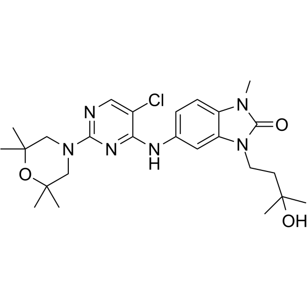5-[[5-chloro-2-(2,2,6,6-tetramethylmorpholin-4-yl)pyrimidin-4-yl]amino]-3-(3-hydroxy-3-methylbutyl)-1-methylbenzimidazol-2-one