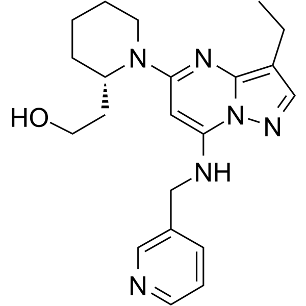 CCC1=C2N=C(C=C(N2N=C1)NCC3=CN=CC=C3)N4CCCC[C@H]4CCO