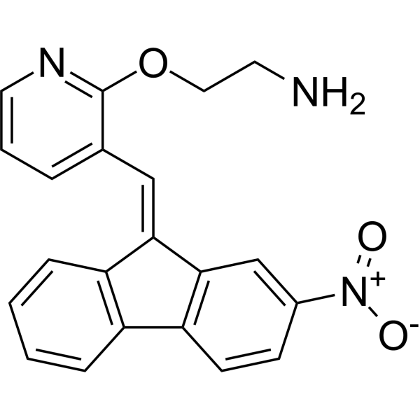 口服配方 3: 溶解于 PEG400 (聚乙二醇400) 请根据您的实验动物和给药方式选择适当的溶解配方/方案: 1、请先配制澄清的储备液(如:用DMSO配置50 或 100 mg/mL母液(储备液)); 2、取适量母液,按从左到右的顺序依次添加助溶剂,澄清后再加入下一助溶剂。以 下列配方为例说明 (注意此配方只用于说明,并不一定代表此产品 的实际溶解配方): 10% DMSO → 40% PEG300 → 5% Tween-80 → 45% ddH2O (或 saline); 假设最终工作液的体积为 1 mL, 浓度为5 mg/mL: 取 100 μL 50 mg/mL 的澄清 DMSO 储备液加到 400 μL PEG300 中,混合均匀/澄清;向上述体系中加入50 μL Tween-80,混合均匀/澄清;然后继续加入450 μL ddH2O (或 saline)定容至 1 mL; 3、溶剂前显示的百分比是指该溶剂在最终溶液/工作液中的体积所占比例; 4、 如产品在配制过程中出现沉淀/析出,可通过加热(≤50℃)或超声的方式助溶; 5、为保证最佳实验结果,工作液请现配现用! 6、如不确定怎么将母液配置成体内动物实验的工作液,请查看说明书或联系我们; 7、 以上所有助溶剂都可在 Invivochem.cn网站购买。 |