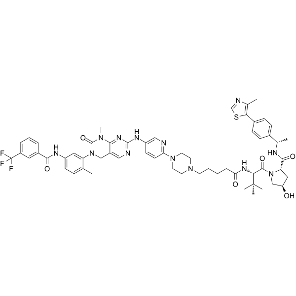 CC1=C(C=C(C=C1)NC(=O)C2=CC(=CC=C2)C(F)(F)F)N3CC4=CN=C(N=C4N(C3=O)C)NC5=CN=C(C=C5)N6CCN(CC6)CCCCC(=O)N[C@H](C(=O)N7C[C@@H](C[C@H]7C(=O)N[C@@H](C)C8=CC=C(C=C8)C9=C(N=CS9)C)O)C(C)(C)C