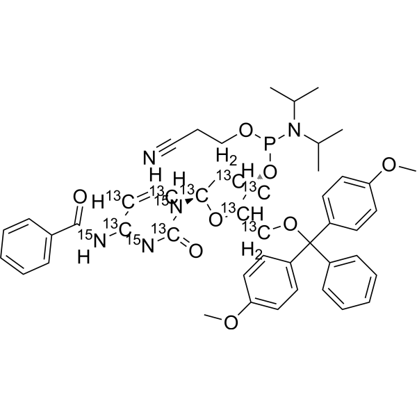 InChI=1S/C46H52N5O8P/c1-32(2)51(33(3)4)60(57-29-13-27-47)59-40-30-43(50-28-26-42(49-45(50)53)48-44(52)34-14-9-7-10-15-34)58-41(40)31-56-46(35-16-11-8-12-17-35,36-18-22-38(54-5)23-19-36)37-20-24-39(55-6)25-21-37/h7-12,14-26,28,32-33,40-41,43H,13,29-31H2,1-6H3,(H,48,49,52,53)/t40-,41+,43+,60?/m0/s1/i26+1,28+1,30+1,31+1,40+1,41+1,42+1,43+1,45+1,49+1,50+1