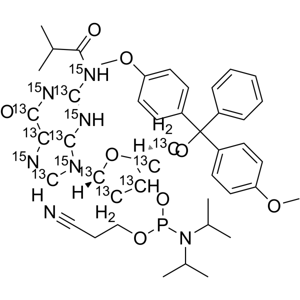 InChI=1S/C44H54N7O8P/c1-28(2)41(52)48-43-47-40-39(42(53)49-43)46-27-50(40)38-25-36(59-60(57-24-12-23-45)51(29(3)4)30(5)6)37(58-38)26-56-44(31-13-10-9-11-14-31,32-15-19-34(54-7)20-16-32)33-17-21-35(55-8)22-18-33/h9-11,13-22,27-30,36-38H,12,24-26H2,1-8H3,(H2,47,48,49,52,53)/t36-,37+,38+,60?/m0/s1/i25+1,26+1,27+1,36+1,37+1,38+1,39+1,40+1,42+1,43+1,46+1,47+1,48+1,49+1,50+1