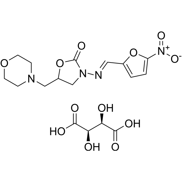InChI=1S/C13H16N4O6.C4H6O6/c18-13-16(14-7-10-1-2-12(22-10)17(19)20)9-11(23-13)8-15-3-5-21-6-4-15;5-1(3(7)8)2(6)4(9)10/h1-2,7,11H,3-6,8-9H2;1-2,5-6H,(H,7,8)(H,9,10)/t;1-,2-/m.1/s1