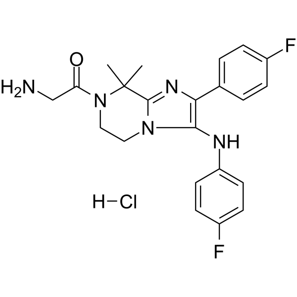 2-amino-1-[3-(4-fluoroanilino)-2-(4-fluorophenyl)-8,8-dimethyl-5,6-dihydroimidazo[1,2-a]pyrazin-7-yl]ethanone;hydrochloride
