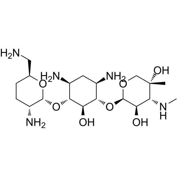 [2]. Ishikawa M, et al. Lower ototoxicity and absence of hidden hearing loss point to gentamicin C1a and apramycin as promising antibiotics for clinical use. Sci Rep. 2019 Feb 20;9(1):2410. [3]. Isoherranen N, et al. Pharmacokinetics of gentamicin C(1), C(1a), and C(2) in beagles after a single intravenous dose. Antimicrob Agents Chemother. 2000 Jun;44(6):1443-7. |
