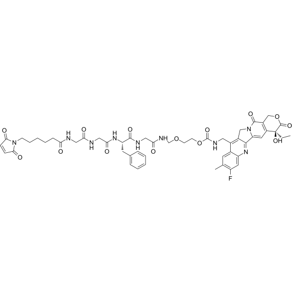 2-[[[2-[[(2S)-2-[[2-[[2-[6-(2,5-dioxopyrrol-1-yl)hexanoylamino]acetyl]amino]acetyl]amino]-3-phenylpropanoyl]amino]acetyl]amino]methoxy]ethyl N-[[(19S)-19-ethyl-6-fluoro-19-hydroxy-7-methyl-14,18-dioxo-17-oxa-3,13-diazapentacyclo[11.8.0.02,11.04,9.015,20]henicosa-1(21),2,4(9),5,7,10,15(20)-heptaen-10-yl]methyl]carbamate