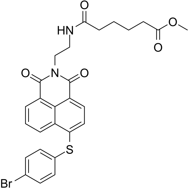 InChI=1S/C27H25BrN2O5S/c1-35-24(32)8-3-2-7-23(31)29-15-16-30-26(33)20-6-4-5-19-22(14-13-21(25(19)20)27(30)34)36-18-11-9-17(28)10-12-18/h4-6,9-14H,2-3,7-8,15-16H2,1H3,(H,29,31)