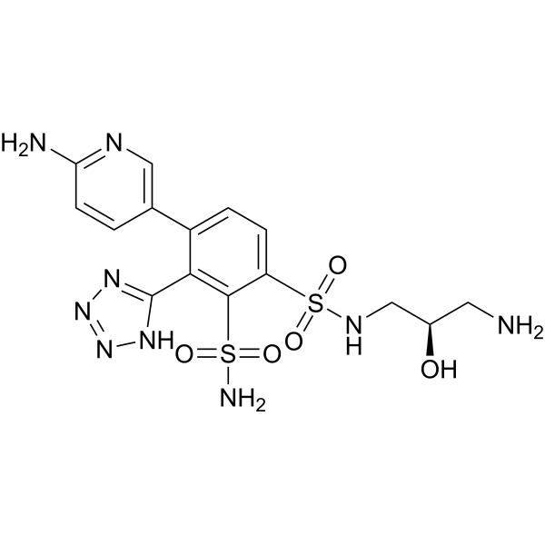 C1=CC(=NC=C1C2=C(C(=C(C=C2)S(=O)(=O)NC[C@@H](CN)O)S(=O)(=O)N)C3=NNN=N3)N