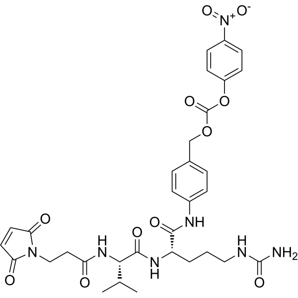 CC(C)[C@@H](C(=O)N[C@@H](CCCNC(=O)N)C(=O)NC1=CC=C(C=C1)COC(=O)OC2=CC=C(C=C2)[N+](=O)[O-])NC(=O)CCN3C(=O)C=CC3=O