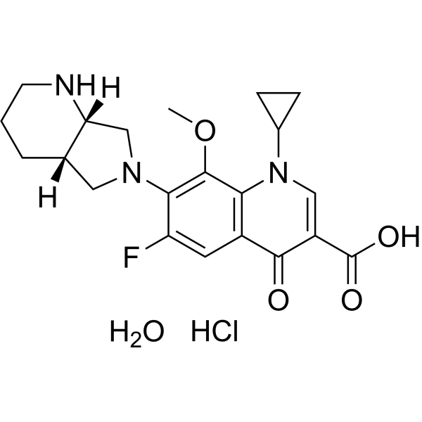 InChI=1S/C21H24FN3O4.ClH.H2O/c1-29-20-17-13(19(26)14(21(27)28)9-25(17)12-4-5-12)7-15(22)18(20)24-8-11-3-2-6-23-16(11)10-24;;/h7,9,11-12,16,23H,2-6,8,10H2,1H3,(H,27,28);1H;1H2/t11-,16+;;/m0../s1
