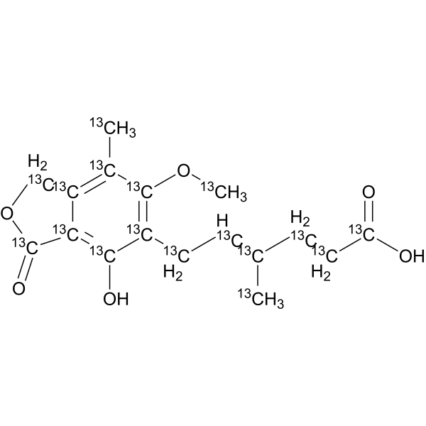 InChI=1S/C17H20O6/c1-9(5-7-13(18)19)4-6-11-15(20)14-12(8-23-17(14)21)10(2)16(11)22-3/h4,20H,5-8H2,1-3H3,(H,18,19)/b9-4+/i1+1,2+1,3+1,4+1,5+1,6+1,7+1,8+1,9+1,10+1,11+1,12+1,13+1,14+1,15+1,16+1,17+1