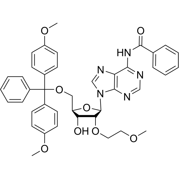 COCCO[C@@H]1[C@@H]([C@H](O[C@H]1N2C=NC3=C(N=CN=C32)NC(=O)C4=CC=CC=C4)COC(C5=CC=CC=C5)(C6=CC=C(C=C6)OC)C7=CC=C(C=C7)OC)O
