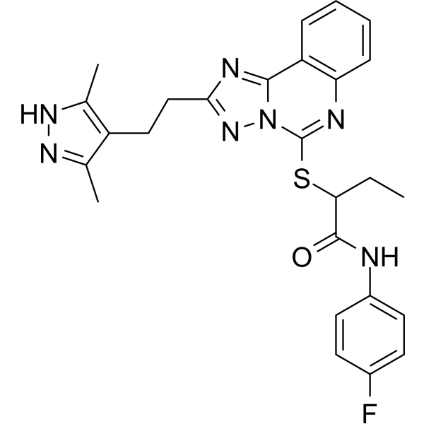 注射用配方1: DMSO : Tween 80: Saline = 10 : 5 : 85 (如: 100 μL DMSO → 50 μL Tween 80 → 850 μL Saline)(IP/IV/IM/SC等) *生理盐水/Saline的制备:将0.9g氯化钠/NaCl溶解在100 mL ddH ₂ O中,得到澄清溶液。 注射用配方 2: DMSO : PEG300 :Tween 80 : Saline = 10 : 40 : 5 : 45 (如: 100 μL DMSO → 400 μL PEG300 → 50 μL Tween 80 → 450 μL Saline) 注射用配方 3: DMSO : Corn oil = 10 : 90 (如: 100 μL DMSO → 900 μL Corn oil) 示例: 以注射用配方 3 (DMSO : Corn oil = 10 : 90) 为例说明, 如果要配制 1 mL 2.5 mg/mL的工作液, 您可以取 100 μL 25 mg/mL 澄清的 DMSO 储备液,加到 900 μL Corn oil/玉米油中, 混合均匀。 View More