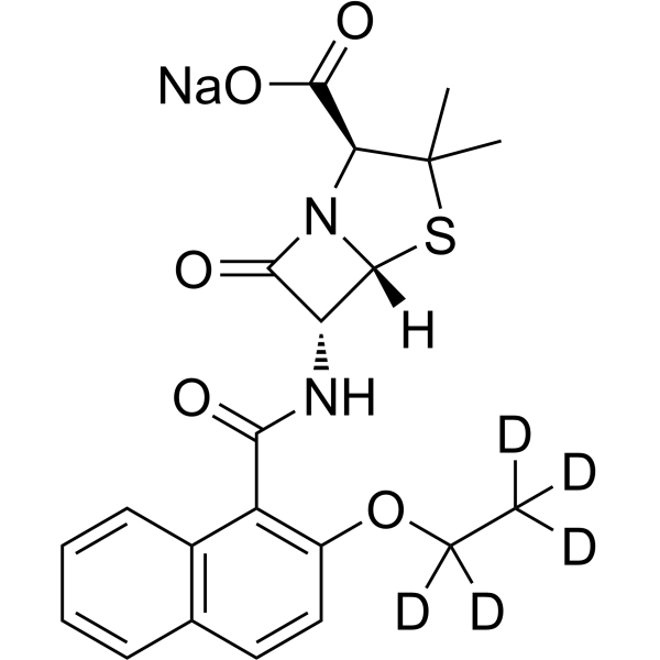 [C@H]1(NC(C2C(OC([2H])([2H])C([2H])([2H])[2H])=CC=C3C=CC=CC=23)=O)[C@]2(SC(C)(C)[C@H](C([O-])=O)N2C1=O)[H].[Na+]