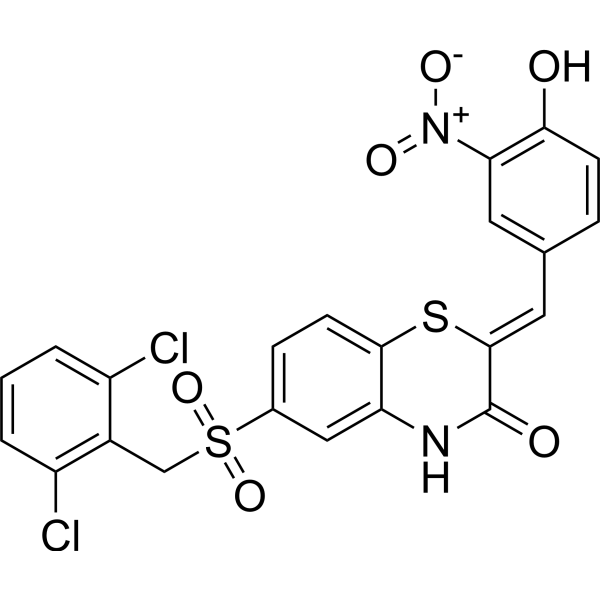 C1=CC(=C(C(=C1)Cl)CS(=O)(=O)C2=CC3=C(C=C2)S/C(=C\C4=CC(=C(C=C4)O)[N+](=O)[O-])/C(=O)N3)Cl