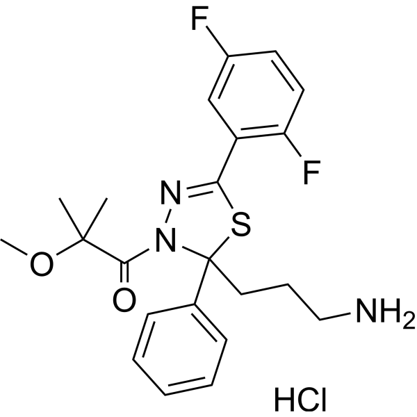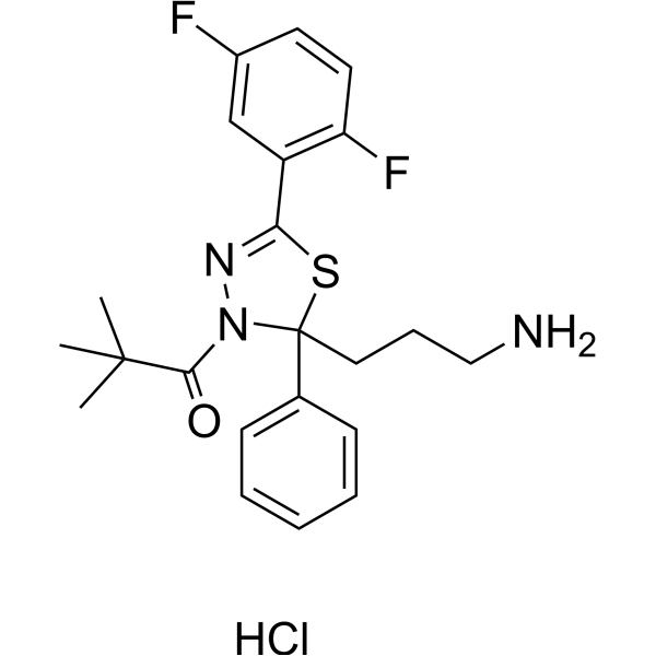 注射用配方1: DMSO : Tween 80: Saline = 10 : 5 : 85 (如: 100 μL DMSO → 50 μL Tween 80 → 850 μL Saline)(IP/IV/IM/SC等) *生理盐水/Saline的制备:将0.9g氯化钠/NaCl溶解在100 mL ddH ₂ O中,得到澄清溶液。 注射用配方 2: DMSO : PEG300 :Tween 80 : Saline = 10 : 40 : 5 : 45 (如: 100 μL DMSO → 400 μL PEG300 → 50 μL Tween 80 → 450 μL Saline) 注射用配方 3: DMSO : Corn oil = 10 : 90 (如: 100 μL DMSO → 900 μL Corn oil) 示例: 以注射用配方 3 (DMSO : Corn oil = 10 : 90) 为例说明, 如果要配制 1 mL 2.5 mg/mL的工作液, 您可以取 100 μL 25 mg/mL 澄清的 DMSO 储备液,加到 900 μL Corn oil/玉米油中, 混合均匀。 View More