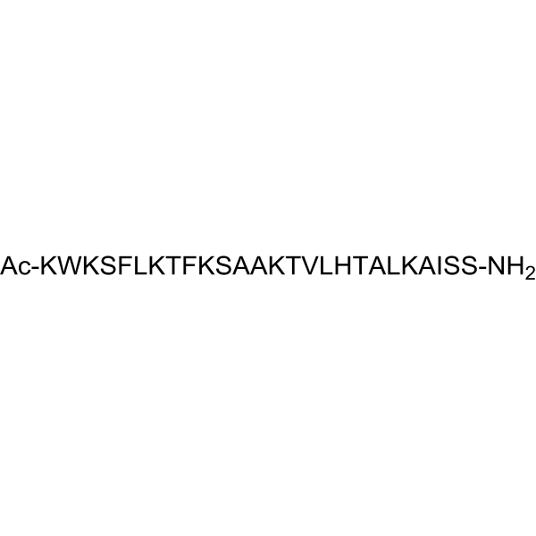 Peceleganan(24 小时)的抗菌活性通过其对大肠杆菌 ATCC 25922、肺炎链球菌 ATCC 49619、肺炎克雷伯菌 ATCC 700603、肺炎链球菌 ATCC 700603、肺炎链球菌的 MIC 值分别为 2、2、4、4、4 和 8 μM 来证明。分别为金黄色葡萄球菌 ATCC 25923、表皮葡萄球菌 ATCC 12228 和铜绿假单胞菌 ATCC 27853[2]。