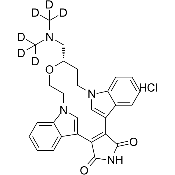 InChI=1S/C28H28N4O3.ClH/c1-30(2)15-18-11-12-31-16-21(19-7-3-5-9-23(19)31)25-26(28(34)29-27(25)33)22-17-32(13-14-35-18)24-10-6-4-8-20(22)24;/h3-10,16-18H,11-15H2,1-2H3,(H,29,33,34);1H/t18-;/m0./s1/i1D3,2D3;