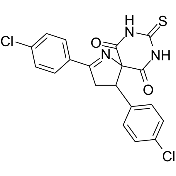 ClC1C=CC(=CC=1)C1CC(C2C=CC(=CC=2)Cl)=NC21C(NC(NC2=O)=S)=O