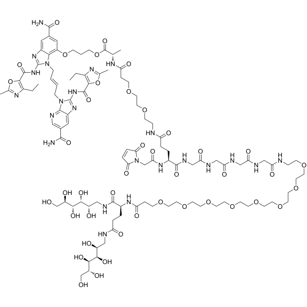 3-[6-carbamoyl-3-[(E)-4-[6-carbamoyl-2-[(4-ethyl-2-methyl-1,3-oxazole-5-carbonyl)amino]imidazo[4,5-b]pyridin-3-yl]but-2-enyl]-2-[(4-ethyl-2-methyl-1,3-oxazole-5-carbonyl)amino]benzimidazol-4-yl]oxypropyl (2S)-2-[3-[2-[2-[[(4S)-5-[[2-[[2-[[2-[[2-[2-[2-[2-[2-[2-[2-[2-[2-[3-[[(2S)-1,5-dioxo-1,5-bis[[(2S,3R,4R,5R)-2,3,4,5,6-pentahydroxyhexyl]amino]pentan-2-yl]amino]-3-oxopropoxy]ethoxy]ethoxy]ethoxy]ethoxy]ethoxy]ethoxy]ethoxy]ethylamino]-2-oxoethyl]amino]-2-oxoethyl]amino]-2-oxoethyl]amino]-2-oxoethyl]amino]-4-[[2-(2,5-dioxopyrrol-1-yl)acetyl]amino]-5-oxopentanoyl]amino]ethoxy]ethoxy]propanoylamino]propanoate