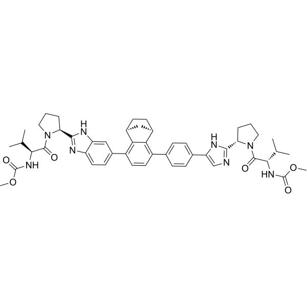 InChI=1S/C49H58N8O6/c1-26(2)42(54-48(60)62-5)46(58)56-21-7-9-38(56)44-50-25-37(53-44)29-13-11-28(12-14-29)33-18-19-34(41-32-16-15-31(23-32)40(33)41)30-17-20-35-36(24-30)52-45(51-35)39-10-8-22-57(39)47(59)43(27(3)4)55-49(61)63-6/h11-14,17-20,24-27,31-32,38-39,42-43H,7-10,15-16,21-23H2,1-6H3,(H,50,53)(H,51,52)(H,54,60)(H,55,61)/t31-,32+,38+,39+,42+,43+/m1/s1