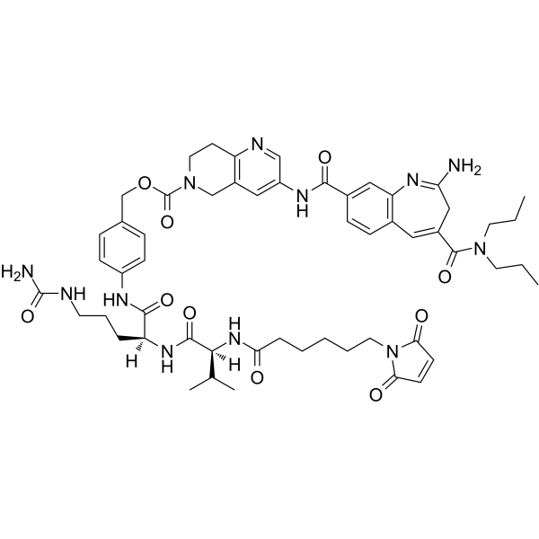 [4-[[(2S)-5-(carbamoylamino)-2-[[(2S)-2-[6-(2,5-dioxopyrrol-1-yl)hexanoylamino]-3-methylbutanoyl]amino]pentanoyl]amino]phenyl]methyl 3-[[2-amino-4-(dipropylcarbamoyl)-3H-1-benzazepine-8-carbonyl]amino]-7,8-dihydro-5H-1,6-naphthyridine-6-carboxylate