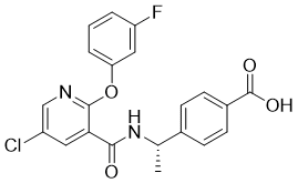 C[C@@H](C1=CC=C(C=C1)C(=O)O)NC(=O)C2=C(N=CC(=C2)Cl)OC3=CC(=CC=C3)F