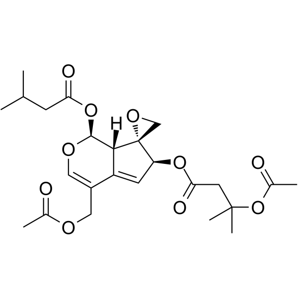 InChI=1S/C24H32O10/c1-13(2)7-19(27)33-22-21-17(16(11-30-22)10-29-14(3)25)8-18(24(21)12-31-24)32-20(28)9-23(5,6)34-15(4)26/h8,11,13,18,21-22H,7,9-10,12H2,1-6H3/t18-,21+,22-,24+/m0/s1
