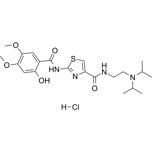 InChI=1S/C21H30N4O5S.ClH/c1-12(2)25(13(3)4)8-7-22-20(28)15-11-31-21(23-15)24-19(27)14-9-17(29-5)18(30-6)10-16(14)26;/h9-13,26H,7-8H2,1-6H3,(H,22,28)(H,23,24,27);1H