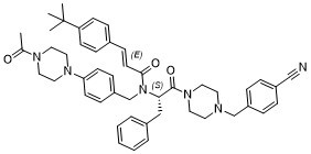 O=C([C@H](CC1C=CC=CC=1)N(C(/C=C/C1C=CC(=CC=1)C(C)(C)C)=O)CC1C=CC(=CC=1)N1CCN(C(C)=O)CC1)N1CCN(CC2C=CC(C#N)=CC=2)CC1
