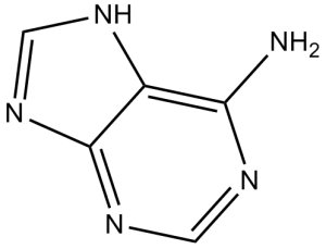 腺嘌呤是一种嘌呤碱基,是核酸和辅酶的重要组成部分。在可能原始的地球条件下,它可以由氰化氢合成。将氰化氢溶于氨水中,在适中温度下加热即可生成腺嘌呤,离心去除不溶性黑色氰化氢聚合物后,可通过色谱法分离得到该产物[1]。腺嘌呤是6-氨基嘌呤的母体化合物,由C-6位带有氨基的嘌呤组成。它存在于人体、大型蚤、酿酒酵母、大肠杆菌和小鼠体内,是一种重要的代谢产物。腺嘌呤是一种嘌呤核碱基,属于6-氨基嘌呤类化合物。它来源于9H-嘌呤的氢化物。