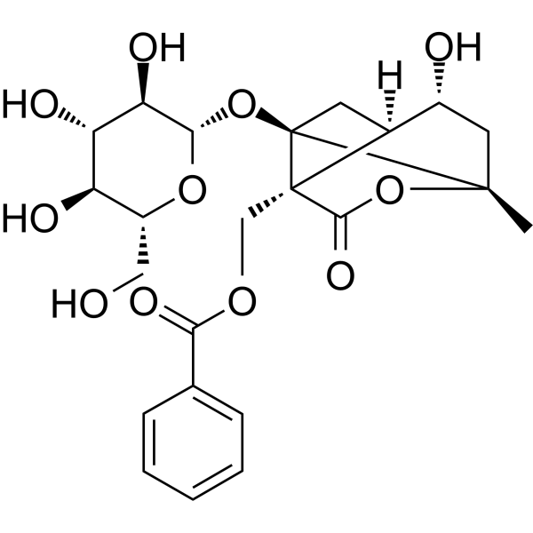 白芍苷(Albiflorin)是一种单萜糖苷,分子式为C23H28O11,最初是从芍药(Paeonia lactiflora)的根中分离得到的。它是一种植物代谢产物和神经保护剂。它是一种苯甲酸酯、γ-内酯、β-D-葡萄糖苷、单萜糖苷、仲醇和桥联化合物。