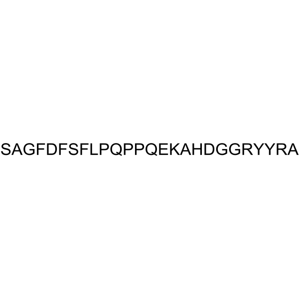 注射用配方1: DMSO : Tween 80: Saline = 10 : 5 : 85 (如: 100 μL DMSO → 50 μL Tween 80 → 850 μL Saline)(IP/IV/IM/SC等) *生理盐水/Saline的制备:将0.9g氯化钠/NaCl溶解在100 mL ddH ₂ O中,得到澄清溶液。 注射用配方 2: DMSO : PEG300 :Tween 80 : Saline = 10 : 40 : 5 : 45 (如: 100 μL DMSO → 400 μL PEG300 → 50 μL Tween 80 → 450 μL Saline) 注射用配方 3: DMSO : Corn oil = 10 : 90 (如: 100 μL DMSO → 900 μL Corn oil) 示例: 以注射用配方 3 (DMSO : Corn oil = 10 : 90) 为例说明, 如果要配制 1 mL 2.5 mg/mL的工作液, 您可以取 100 μL 25 mg/mL 澄清的 DMSO 储备液,加到 900 μL Corn oil/玉米油中, 混合均匀。 View More
