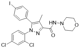 1-(2,4-二氯苯基)-5-(4-碘苯基)-4-甲基-N-(4-吗啉基)-3-吡唑甲酰胺是吡唑类化合物和环状化合物。