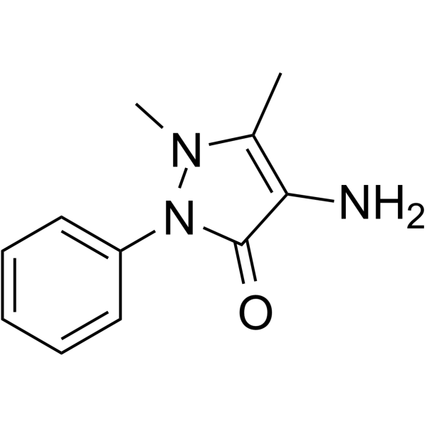 4-氨基安替比林是一种吡唑酮类化合物,属于吡唑类,是安替比林在C-4位被氨基取代的衍生物。它是氨基比林和甲氨基比林的代谢产物。它具有多种药理作用,包括非甾体抗炎药、非麻醉性镇痛药、抗风湿药、周围神经系统药物、EC 1.14.99.1(前列腺素内过氧化物合酶)抑制剂、解热药、药物代谢物和海洋异生物质代谢物。它是一种伯氨基化合物,属于吡唑酮类化合物。其功能与安替比林相关。