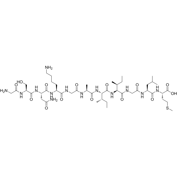 InChI=1S/C45H81N13O14S/c1-9-24(5)36(43(69)50-21-35(63)52-29(17-23(3)4)40(66)55-28(45(71)72)14-16-73-8)58-44(70)37(25(6)10-2)57-38(64)26(7)51-34(62)20-49-39(65)27(13-11-12-15-46)54-41(67)30(18-32(48)60)56-42(68)31(22-59)53-33(61)19-47/h23-31,36-37,59H,9-22,46-47H2,1-8H3,(H2,48,60)(H,49,65)(H,50,69)(H,51,62)(H,52,63)(H,53,61)(H,54,67)(H,55,66)(H,56,68)(H,57,64)(H,58,70)(H,71,72)